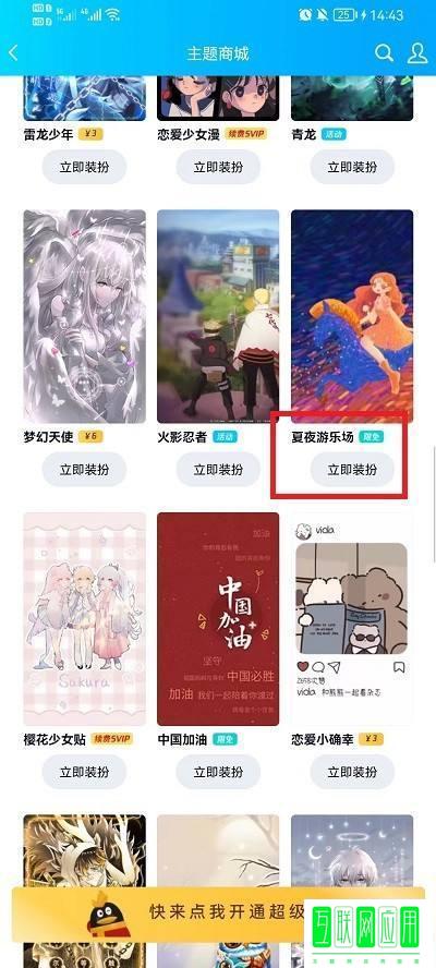 2、2、在该界面中,点击中间的【限免装扮大放送】进入到主题功能界面;