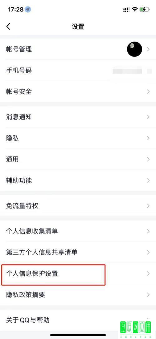 2、进入设置后,在底部找到【个人信息保护设置】。