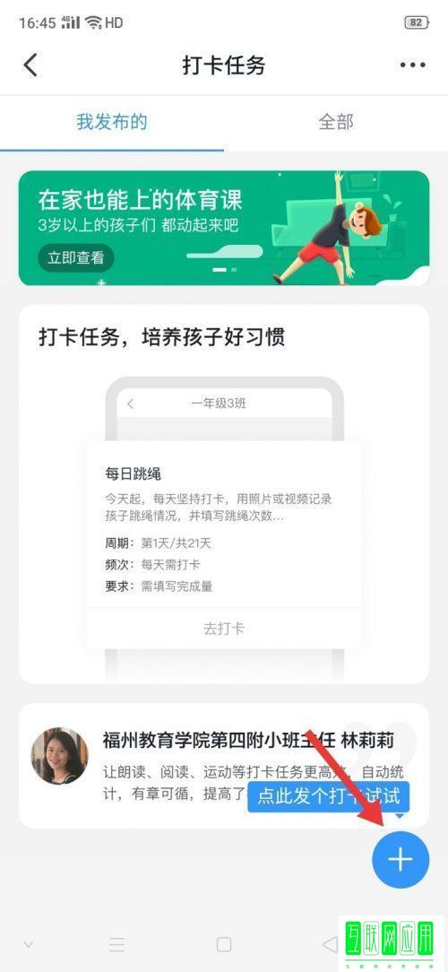 2、点击后,点击【+】发布打卡。