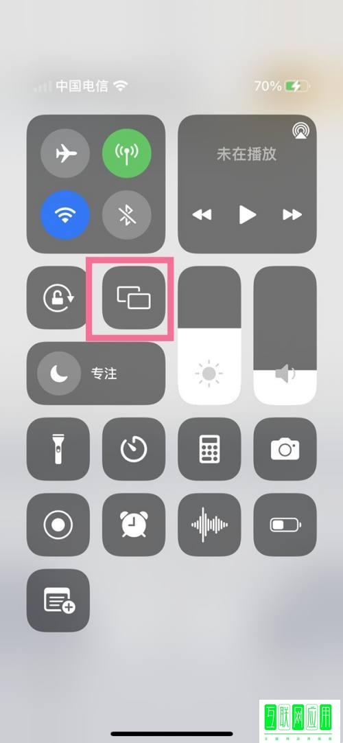 2、从屏幕右上角向下轻扫,开启控制中心,找到【屏幕镜像】。
