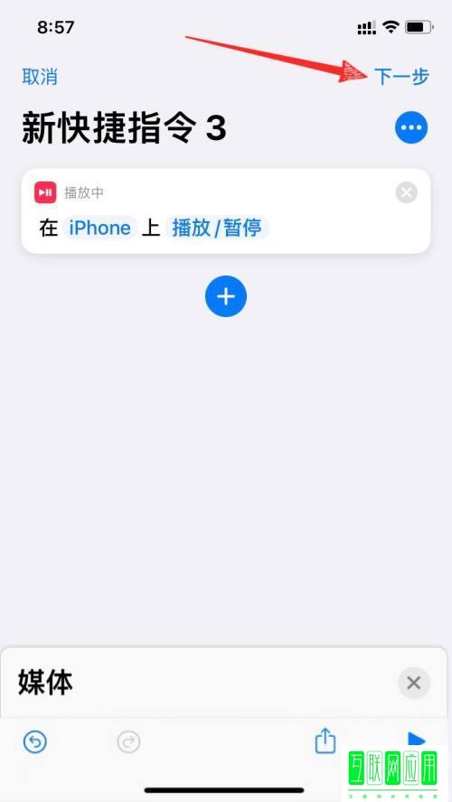 5、完成以上操作后,再点击新快捷指令页面右上角的“下一步”。