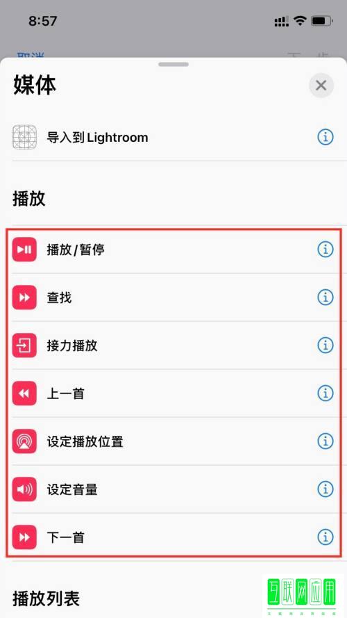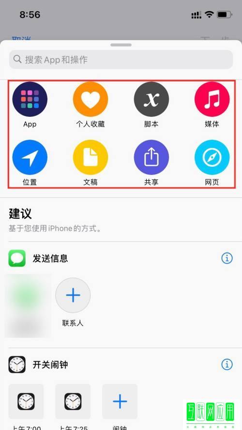 3、弹出来的操作页面中,选择你创建快捷指令操作类型。