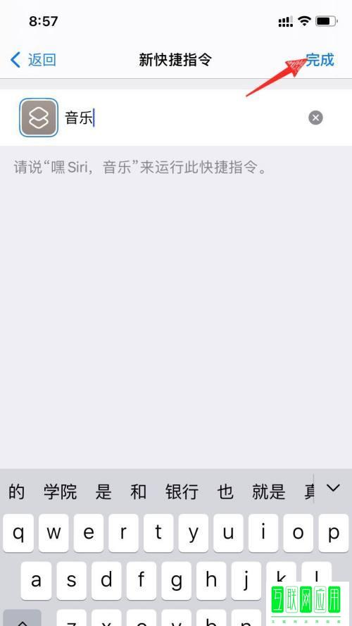 6、编辑快捷指令名称后,点击“完成”即可完成快捷指令的添加。