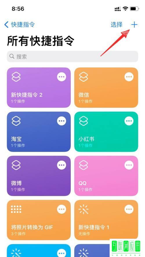 1、首先需要进入苹果手机的“快捷指令”功能里,再点击右上角的“+”。