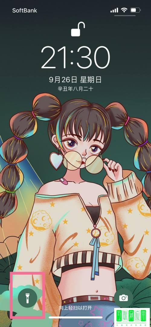 2、点击手电筒图标,等图标从灰色变成蓝色即可打开手电筒。