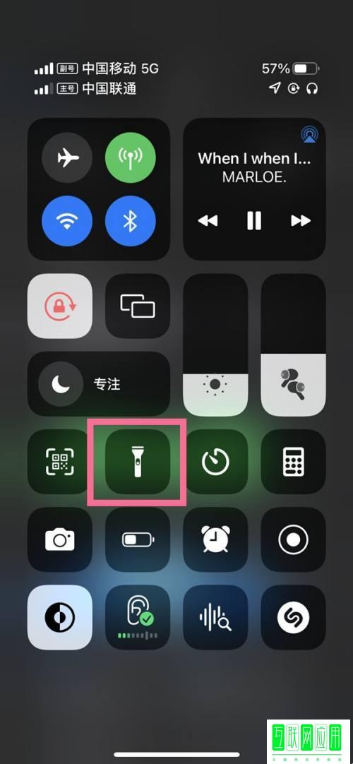 本次测试的原料是苹果13|ios15 1、在手机主屏幕右上角下滑,调出控制中心。 2、点击手电筒图标,等图标从灰色变成...