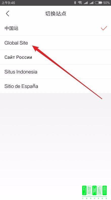 6、这时进入切换站点的页面,点击页面中的“Global Site”菜单项。