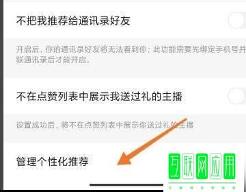 3、然后在隐私设置下点击【管理个性化推荐】。
