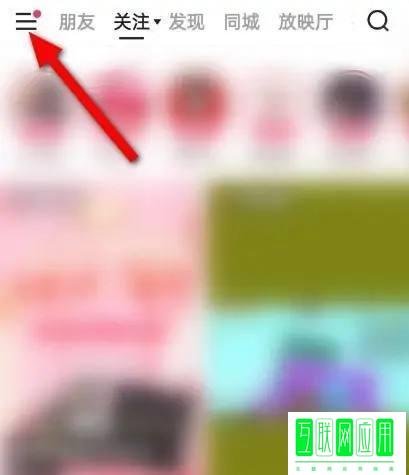 1、第一步,打开手机中的快手,点击左上方的菜单。