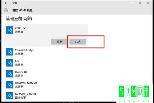 6、第六步在管理已知网络界面,点击忘记,可以忘记连接,进行重新输入密码连接,也可以进行共享这个wifi,如下图所示: