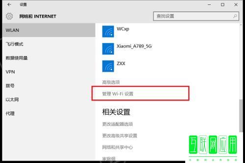 4、第四步下滑找到管理wifi设置,进行管理win10系统的无线网络,如下图所示: