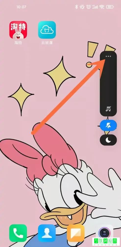 1、打开手机,按一下机身侧边的音量键,在屏幕上调出音量,点击三个点击进入更多声音调节页面。